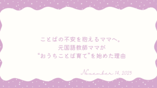 未分類 ことばの不安を抱えるママへ。元国語教師ママが“おうちことば育て”を始めた理由 「同じ月齢の子はもうおしゃべりしているのに…」「うちの子、まだ単語しか出ない」「言いたいことがあるのに、うまく言えなくて泣いてしまう…」そんなふうに、お子さんの“ことば”について不安を感じたことはありませんか?成長には個人差があるとわかって... 2025.11.14 未分類
